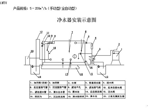 原水濁度≤≤1000mg/L(短時可允許