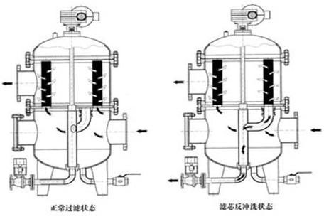 RZFG型全自動(dòng)濾水器由執(zhí)行機(jī)構(gòu)及自動(dòng)控制機(jī)構(gòu)組成,執(zhí)行機(jī)構(gòu)由電動(dòng)減速裝置、濾水器本體、電動(dòng)排污閥等組成。自動(dòng)控制機(jī)構(gòu)由安裝在濾水器本體上的差壓控制器及PLC、模塊、電器控制箱組成。